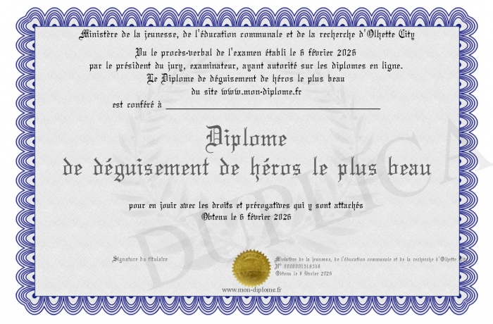 Envoyez par email votre Diplôme de déguisement de héros le plus beau personalisé