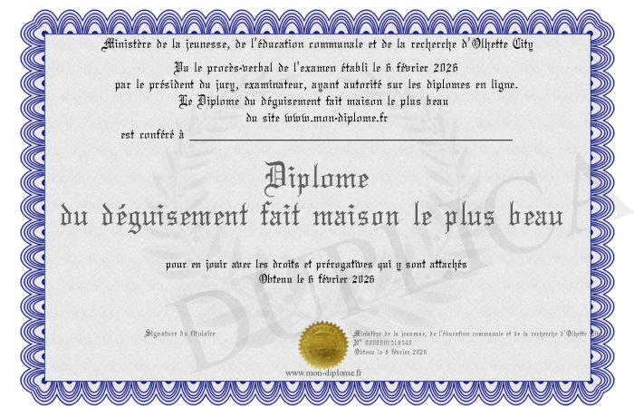 Envoyez par email votre Diplôme du déguisement fait maison le plus beau personalisé