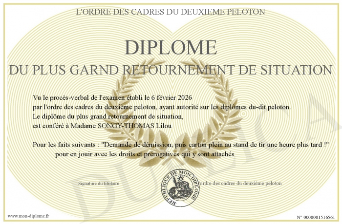 Envoyez par email votre Diplôme du plus garnd retournement de situation personalisé