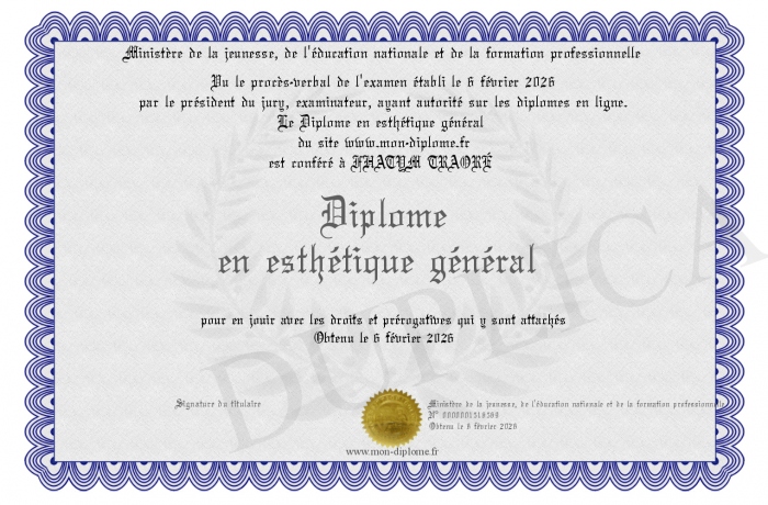 Envoyez par email votre Diplôme en esthétique général personalisé