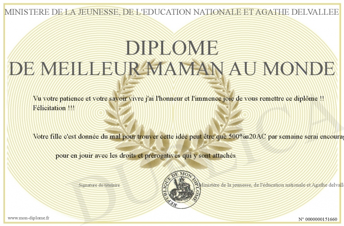 Envoyez par email votre Diplôme de meilleur Maman au monde personalisé
