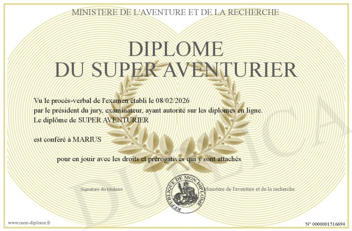 Envoyez par email votre Diplôme du super aventurier personalisé