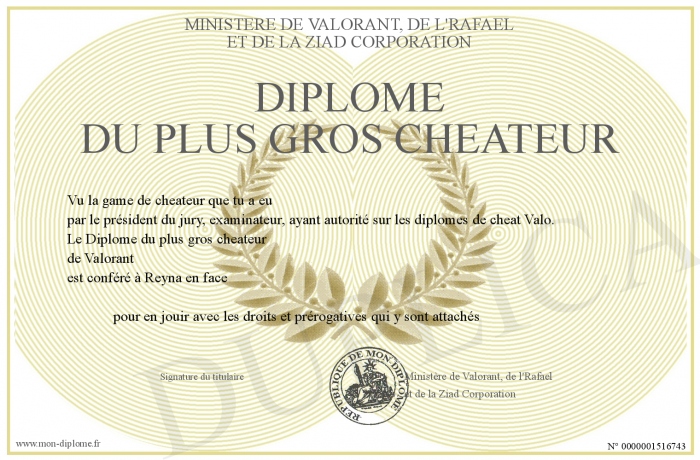 Envoyez par email votre Diplôme du plus gros cheateur personalisé
