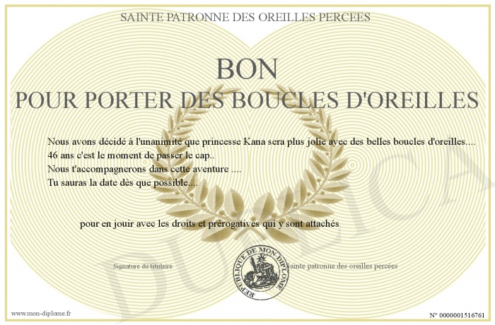Envoyez par email votre Bon pour porter des boucles d'oreilles personalisé