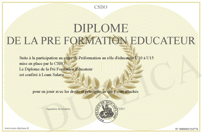 Envoyez par email votre Diplôme de la Pré Formation Educateur personalisé