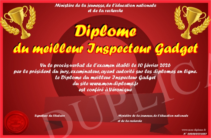 Envoyez par email votre Diplôme du meilleur Inspecteur Gadget personalisé