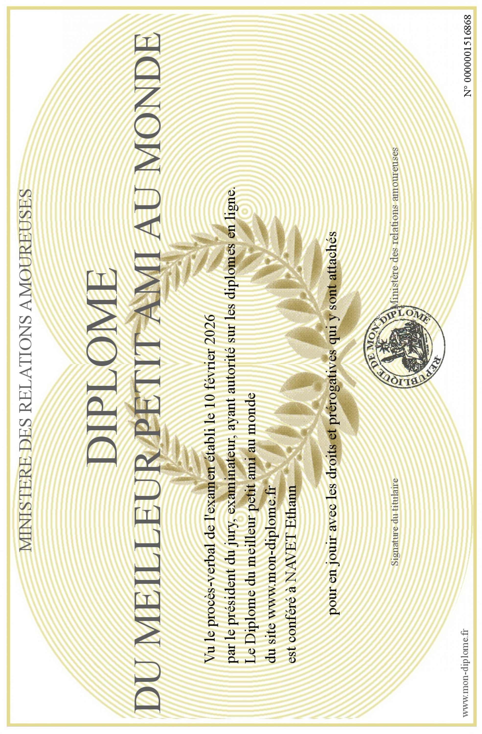 Envoyez par email votre Diplôme du meilleur petit ami au monde personalisé