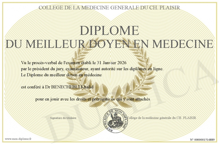 Envoyez par email votre Diplôme du meilleur doyen en médecine personalisé