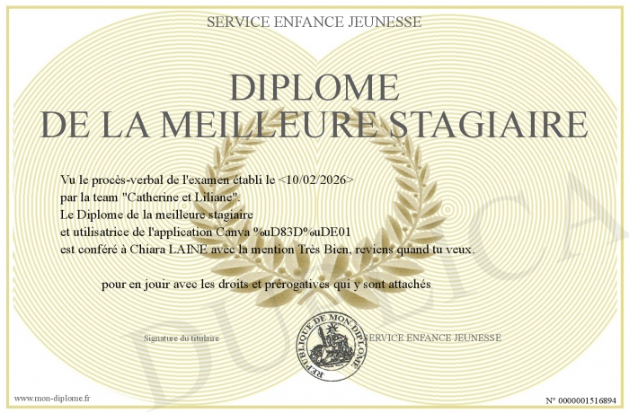 Envoyez par email votre Diplôme de la meilleure stagiaire personalisé