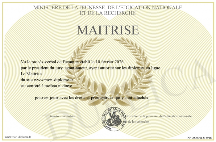 Envoyez par email votre Maitrise personalisé