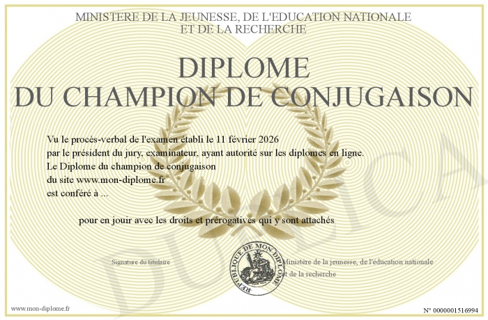 Envoyez par email votre Diplôme du champion de conjugaison personalisé