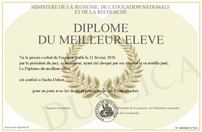 Envoyez par email votre Diplôme du meilleur élève personalisé
