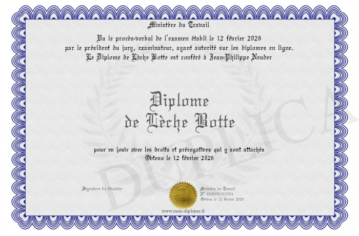 • Diplôme de Lèche Botte