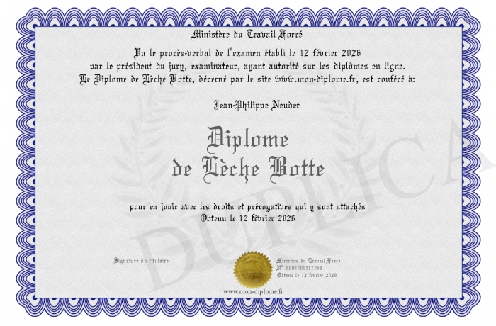 Envoyez par email votre Diplôme de Lèche Botte personalisé