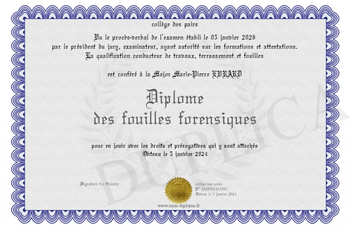 Envoyez par email votre Diplôme des fouilles forensiques personalisé