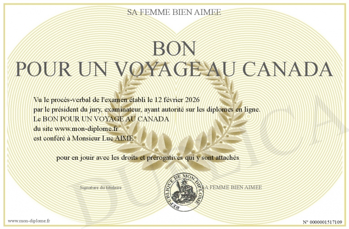 Envoyez par email votre BON POUR UN VOYAGE AU CANADA personalisé