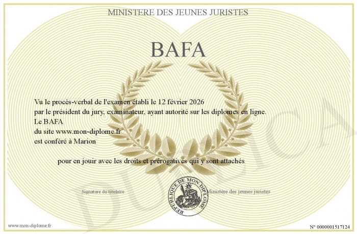 Envoyez par email votre BAFA personalisé