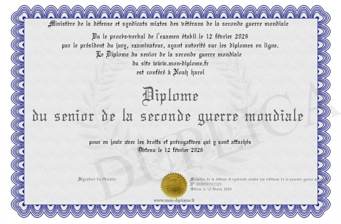 Envoyez par email votre Diplôme du senior de la seconde guerre mondiale personalisé