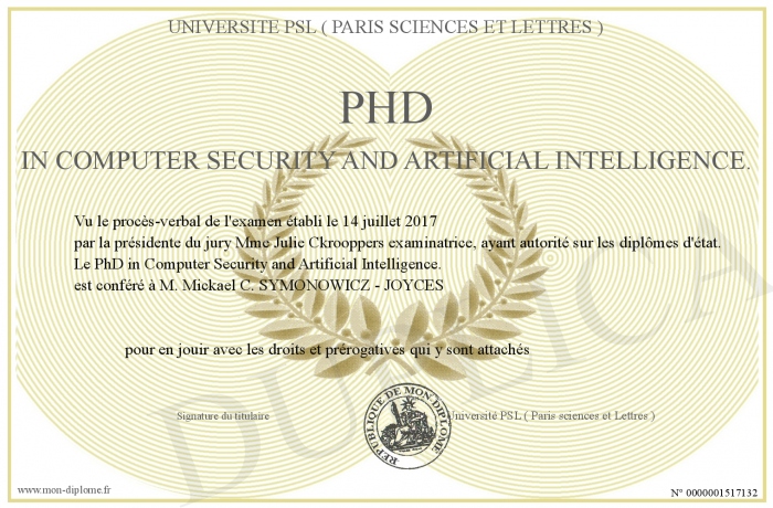 Envoyez par email votre PhD in Computer Security and Artificial Intelligence. personalisé