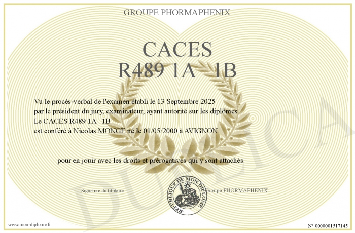 Envoyez par email votre CACES R489 1A 1B personalisé