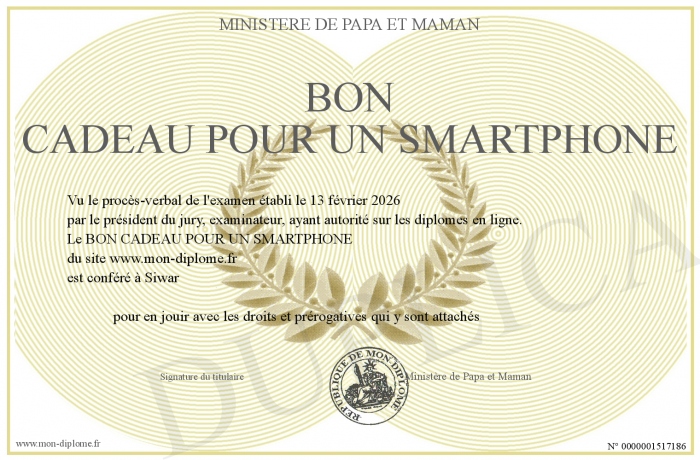 Envoyez par email votre BON CADEAU POUR UN SMARTPHONE personalisé