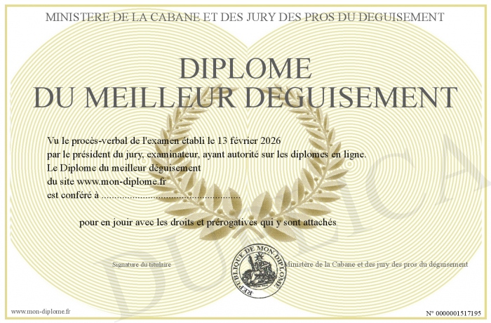 Envoyez par email votre Diplôme du meilleur déguisement personalisé