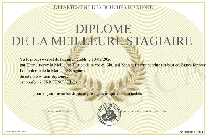 Envoyez par email votre Diplôme de la Meilleure Stagiaire personalisé