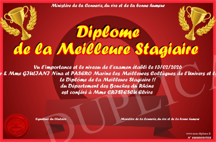 Envoyez par email votre Diplôme de la Meilleure Stagiaire personalisé