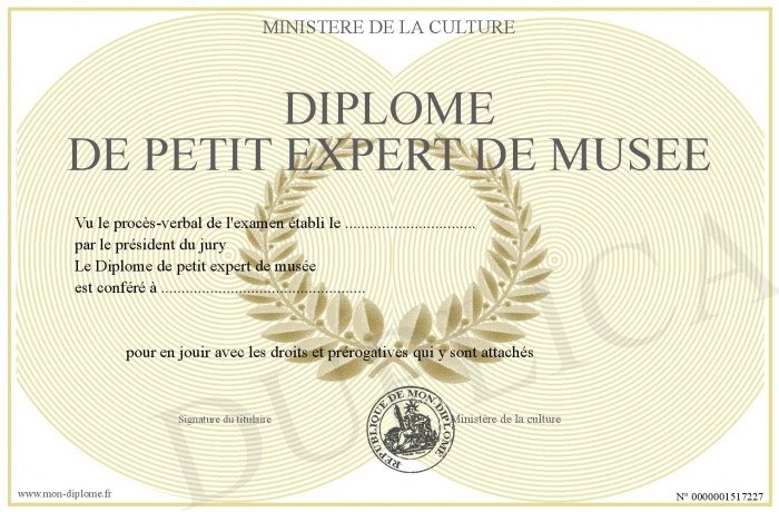 Envoyez par email votre Diplôme de petit expert de musée personalisé