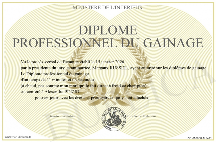 Envoyez par email votre Diplôme professionnel du gainage personalisé