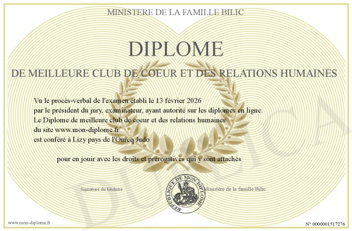 Envoyez par email votre Diplôme de meilleure club de coeur et des relations humaines personalisé