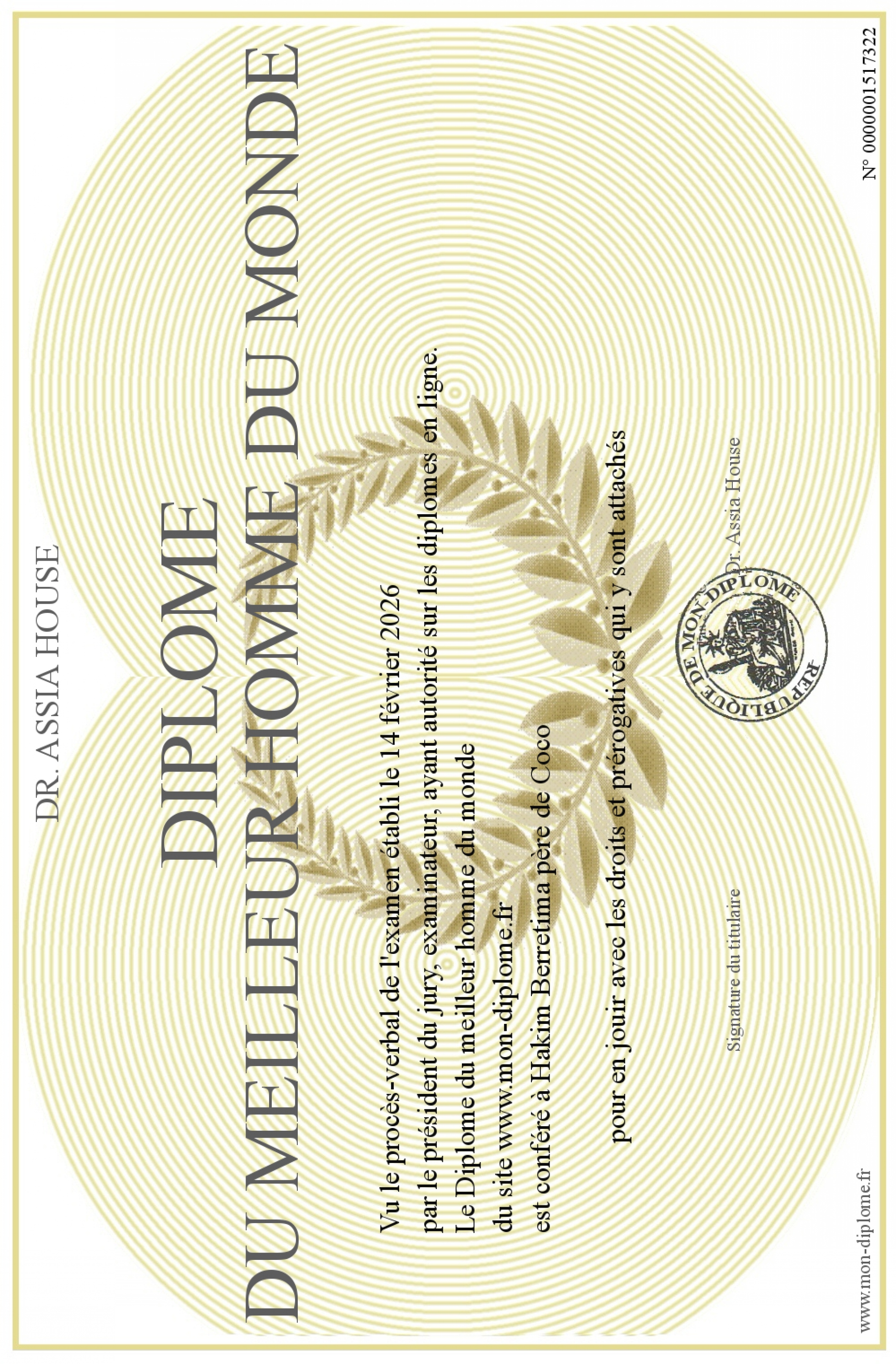 Envoyez par email votre Diplôme du meilleur homme du monde personalisé