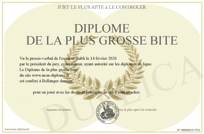 Envoyez par email votre Diplôme de la plus grosse bite personalisé