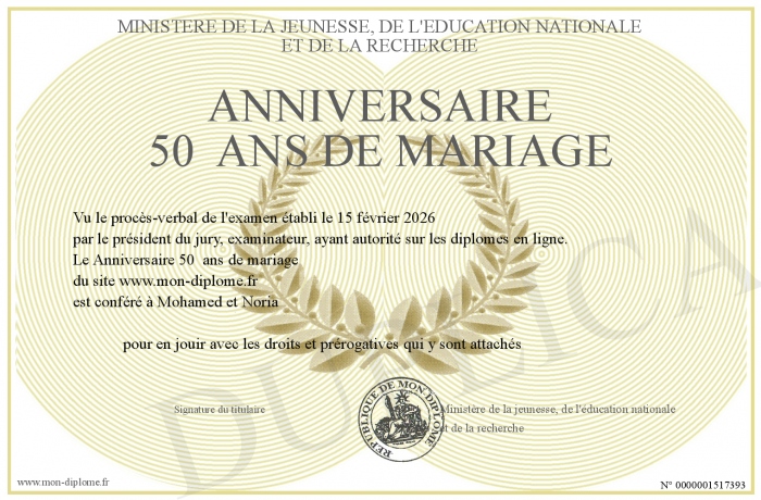 Envoyez par email votre Anniversaire 50 ans de mariage personalisé