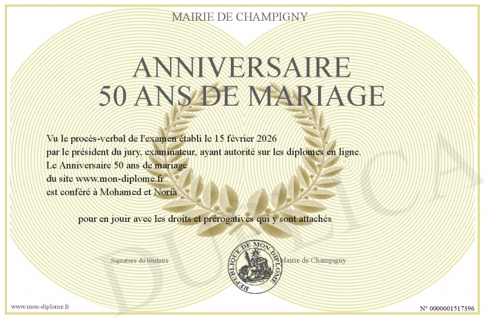 Envoyez par email votre Anniversaire 50 ans de mariage personalisé