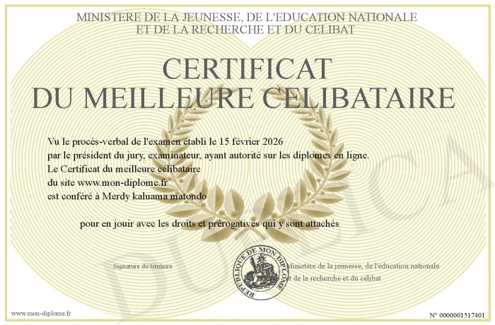 Envoyez par email votre Certificat du meilleure célibataire personalisé