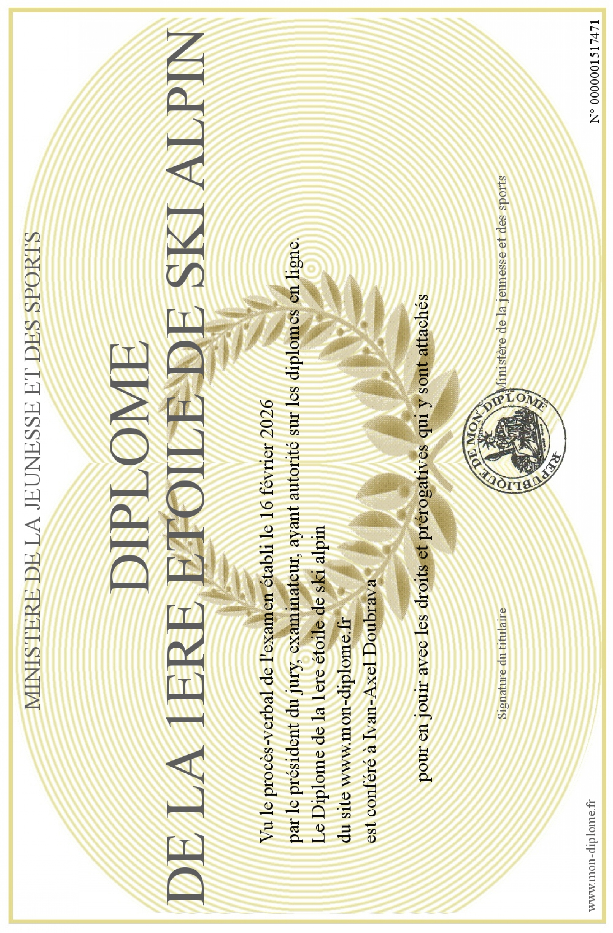 Envoyez par email votre Diplôme de la 1ere étoile de ski alpin personalisé