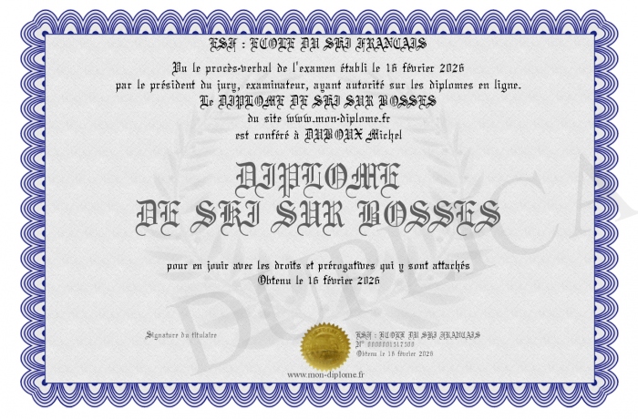 Envoyez par email votre DIPLOME DE SKI SUR BOSSES personalisé