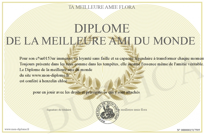 Envoyez par email votre Diplôme de la meilleure ami du monde personalisé