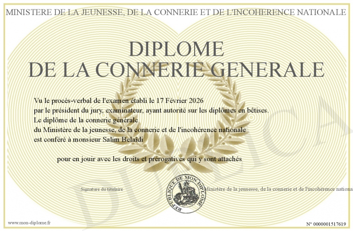 Envoyez par email votre Diplôme de la connerie générale personalisé