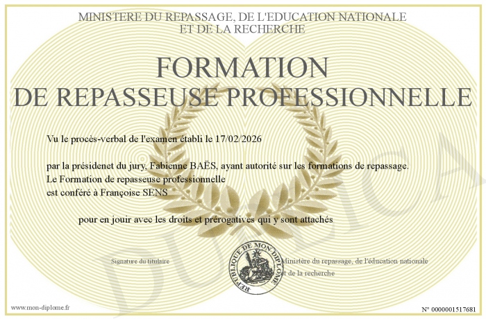 Envoyez par email votre Formation de repasseuse professionnelle personalisé
