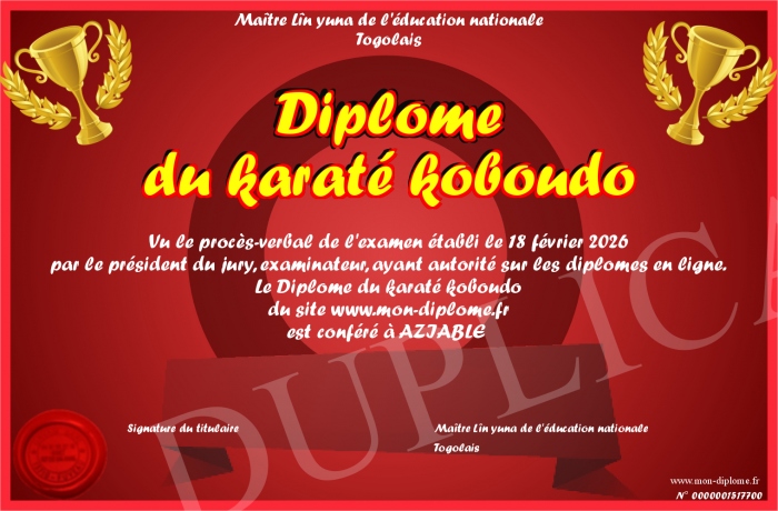Envoyez par email votre Diplôme du karaté koboudo personalisé