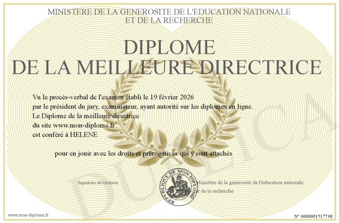 Envoyez par email votre Diplôme de la meilleure directrice personalisé