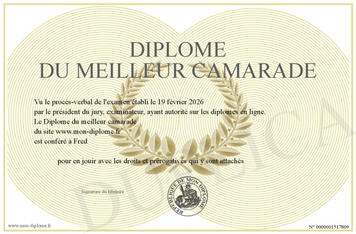 Envoyez par email votre Diplôme du meilleur camarade personalisé