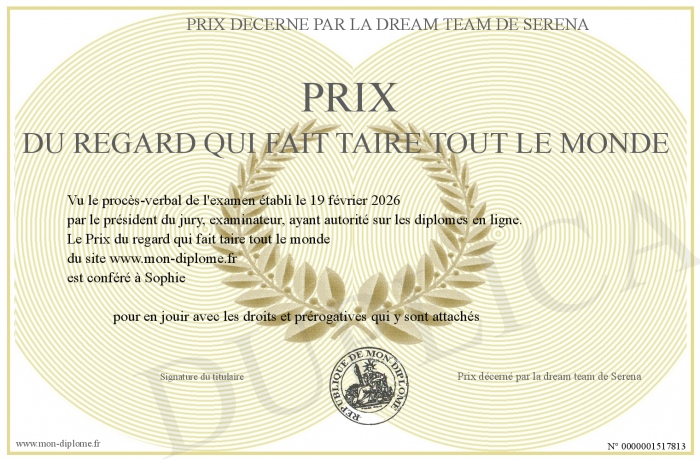 Envoyez par email votre Prix du regard qui fait taire tout le monde personalisé