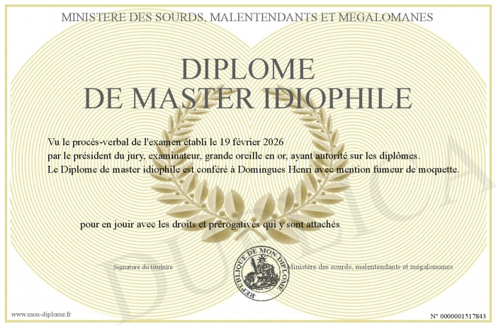 Envoyez par email votre Diplôme de master idiophile personalisé