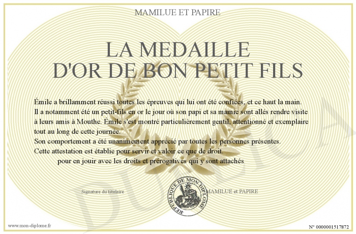 Envoyez par email votre la médaille d'or de bon petit fils personalisé