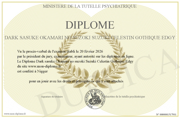 Envoyez par email votre Diplôme Dark sasuke Okamari no suzoki Suzuki Celestin Gothique Edgy personalisé
