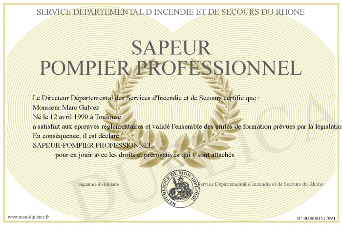 Envoyez par email votre SAPEUR POMPIER PROFESSIONNEL personalisé