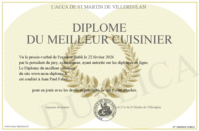 Envoyez par email votre Diplôme du meilleur cuisinier personalisé